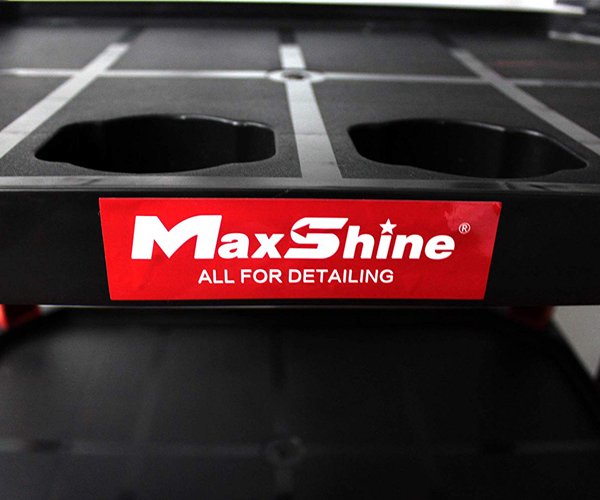 serves as a useful cart for you to placing and organizing your compounds, wash pad, wash sponge, or wash mitt, polishers when you working. Each Maxshine’s Utility Universal Detailing Cart comes with 4 stands on each shelves for you to organize compound, foam cannon and spray nozzles in order, and more spaces provide easy access to tools and keep them safe for storage. Durable plastic legs are easy to install and will not rust. Push handle on each side provide versatility. Dimensions (L x W x H): 66x33x77cm, there are three shelves and if you run out of garage storage, you could use this cart as a rolling toolbox. The products on the cart are just for reference.